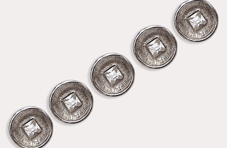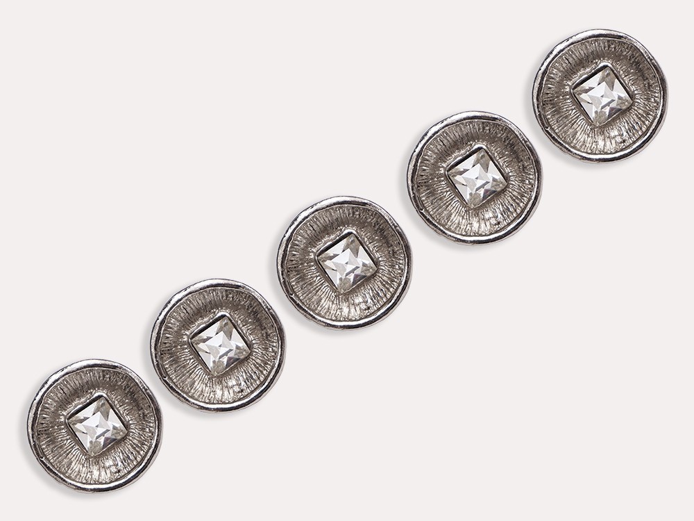 Пуговица круглая со стразами (металл), цвет - серебро