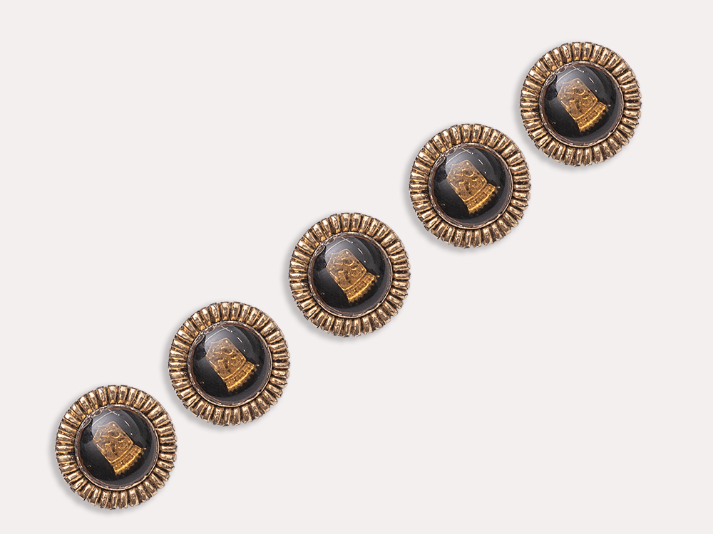 Пуговица круглая металлическая с гербом, цвет - черный и золотой