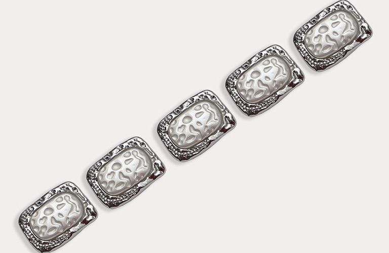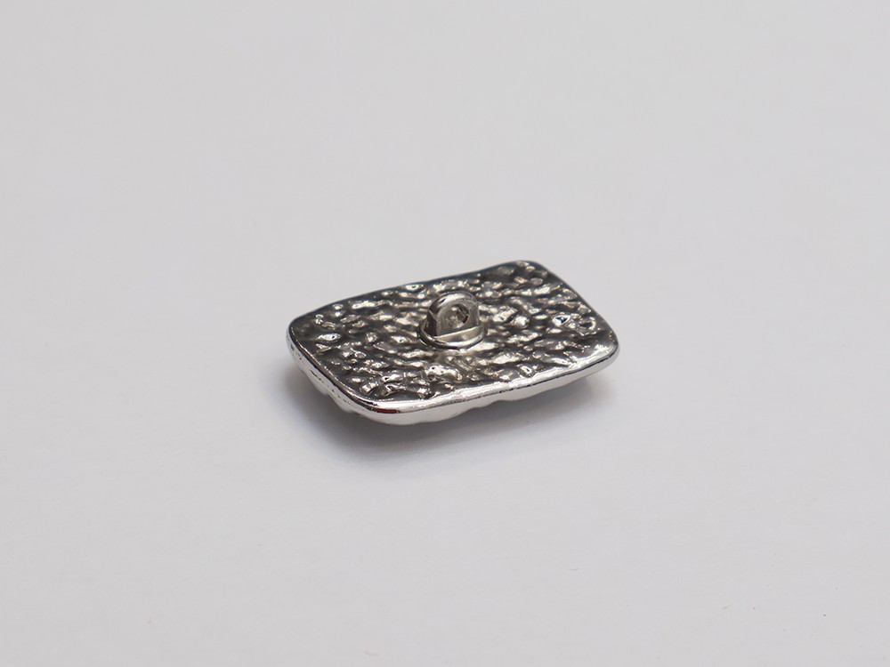 Пуговица прямоугольная (металл), цвет - серебро и жемчужный