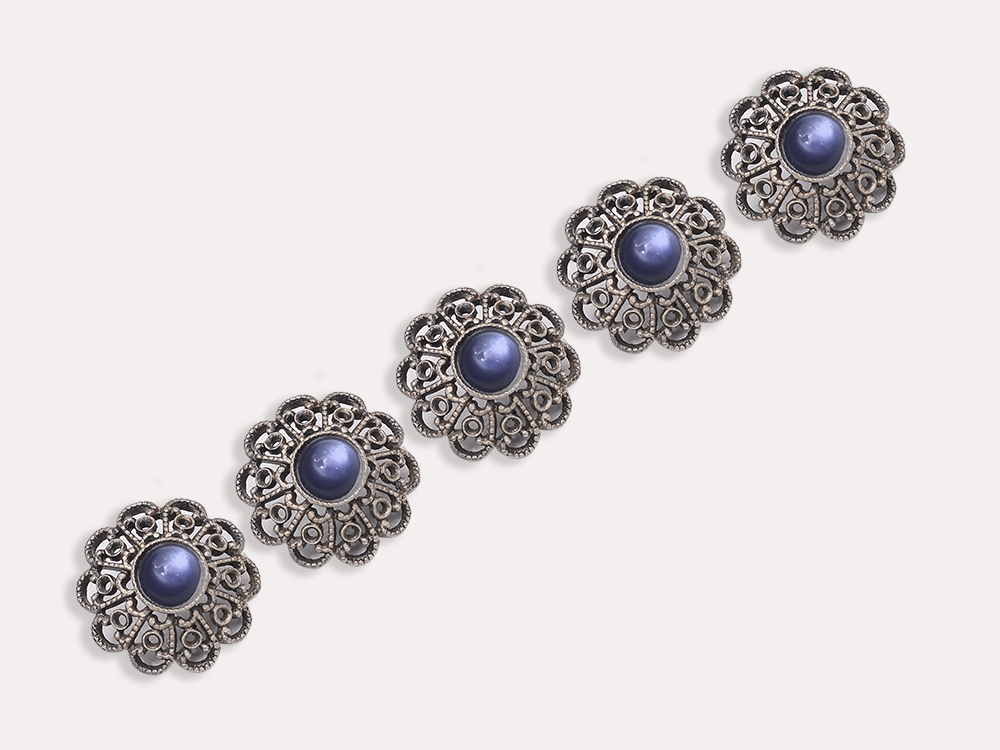 Пуговица круглая с рисунком, цвет - черный и металлик