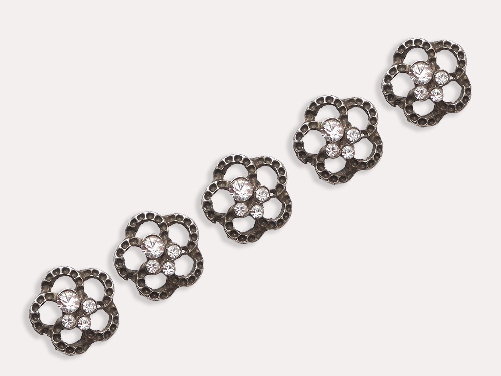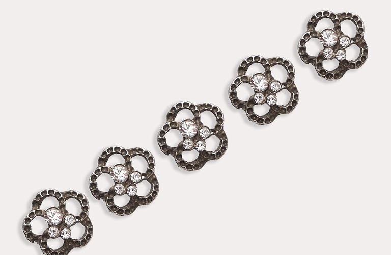 Пуговица в форме цветка со стразами (металл), цвет - металлик