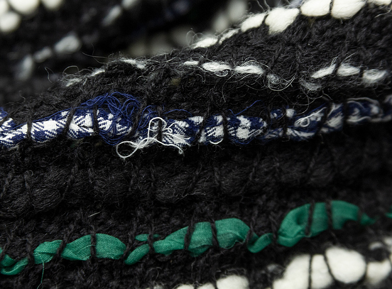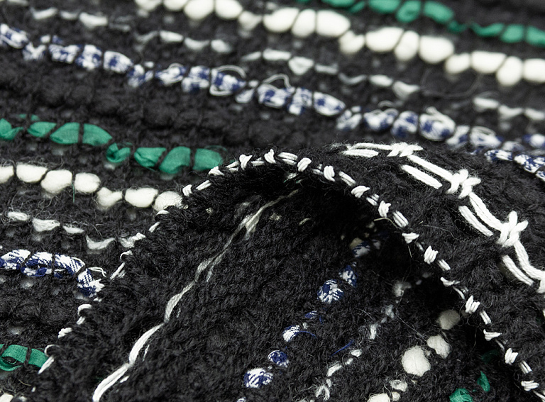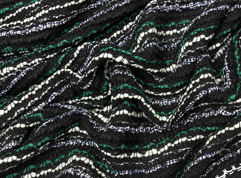 Плотное вязаное полотно из натуральной шерсти, хлопка и вискозы.